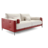 CHARLOT permite la combinación de piel y tejido en diferentes partes del sofá (como asientos, respaldos y brazos), generando un contraste sofisticado y personalizado para cada ambiente.
