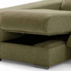 Incluye de serie cojines decorativos (C3) por brazo y un módulo chaiselongue con arcón que integra un amplio espacio de almacenaje oculto, ideal para guardar mantas, cojines y mantener el salón siempre ordenado.